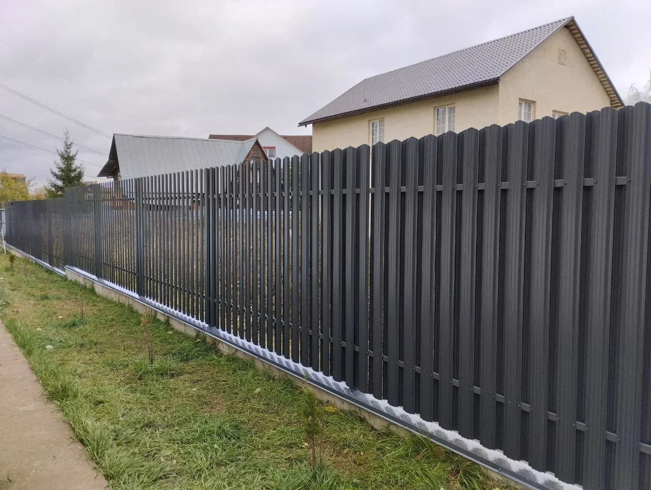 Монтаж забора на бетонном основании. Цвет штакетника Ral 7024
