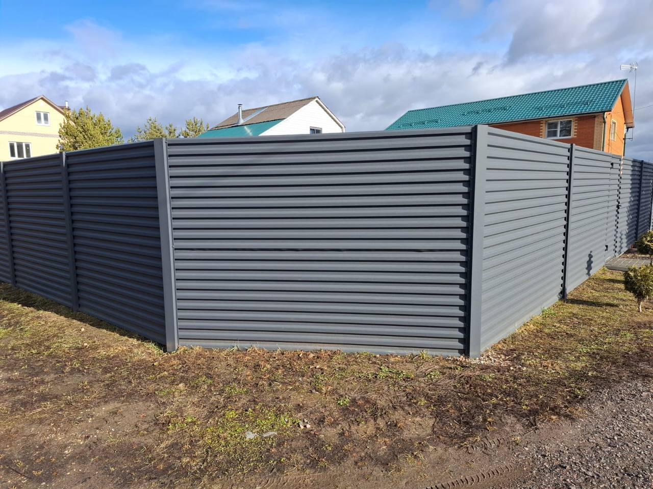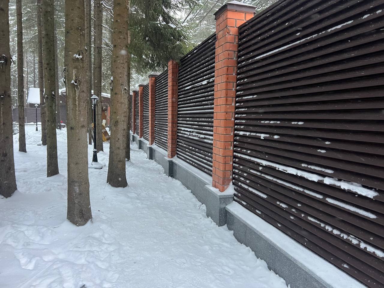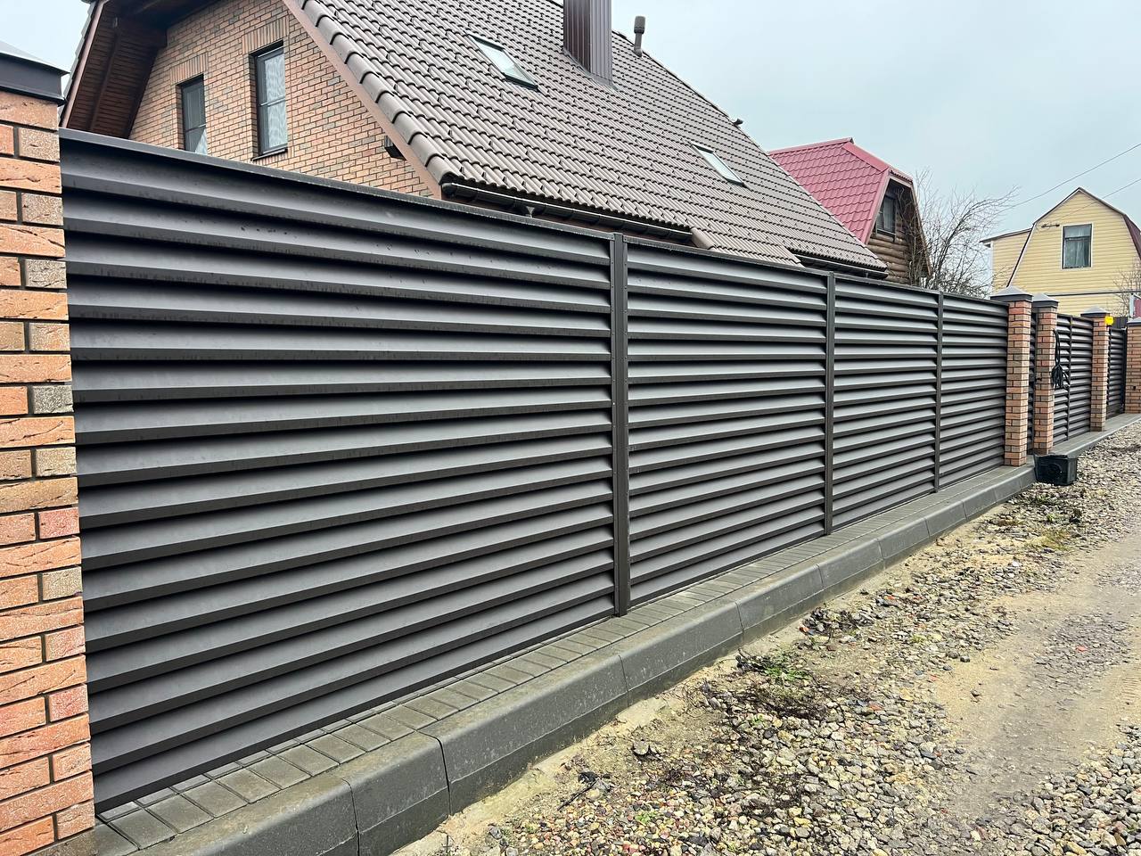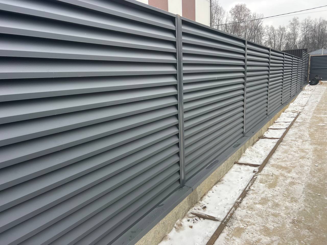 Монтаж забора на бетонном основании. Цвет штакетника Ral 7024