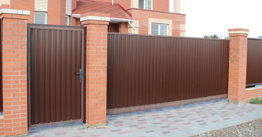Входная группа: откатные ворота с автоматикой, калитка с электромеханическим замком Цвет: 8019